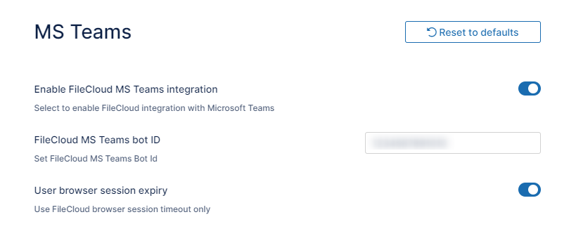 - Enter the MS Teams Bot Id into FileCloud MS Teams bot ID.