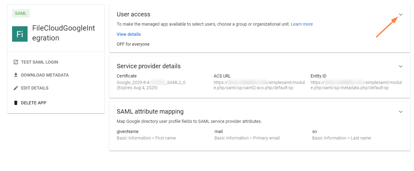 To configure FileCloud/Google integration in Google for SSO group/user import: