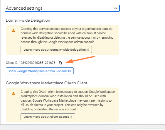Get the service account Client ID: