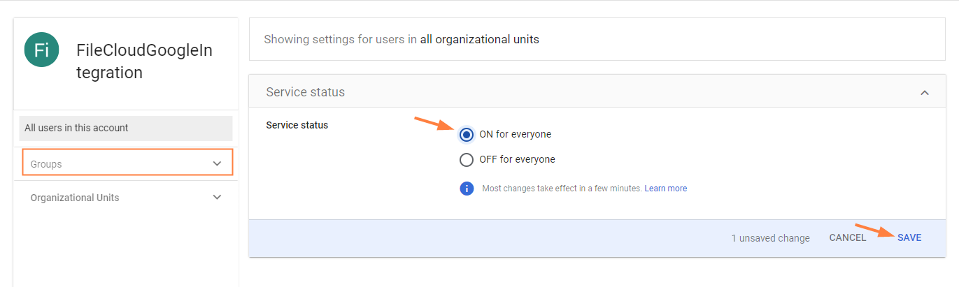 Google: Set up FileCloud Integration for SSO Group/User Import