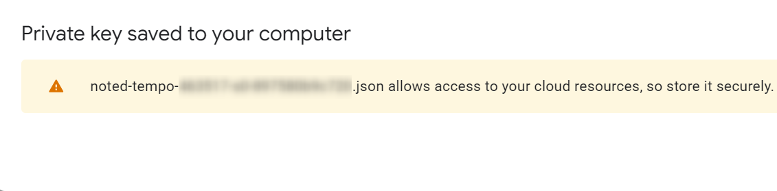 The private key file is saved in a json file. Note its name so you are able to upload it later when you set up Google/FileCloud SSO integration in FileCloud.