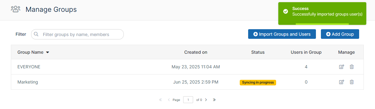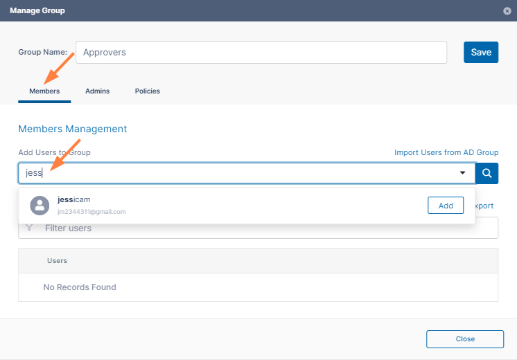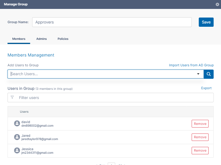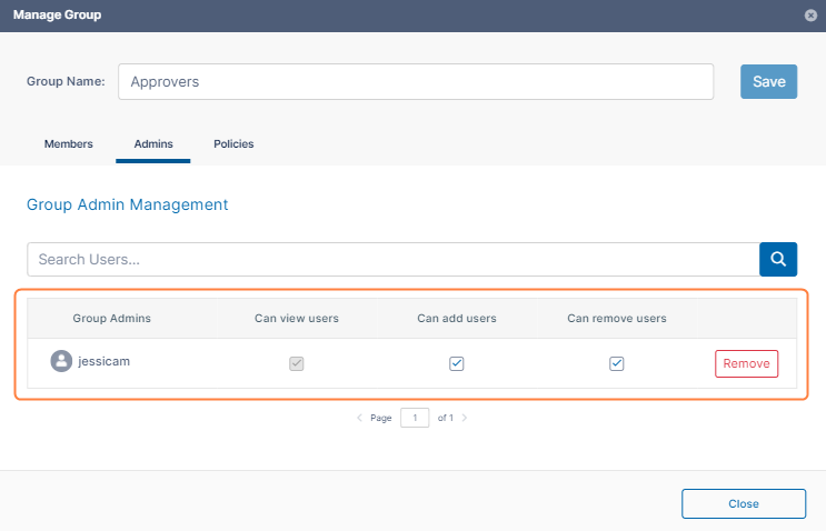 Group Admins - (optional) Users with the ability to view users, add users, and/or remove users from the group.