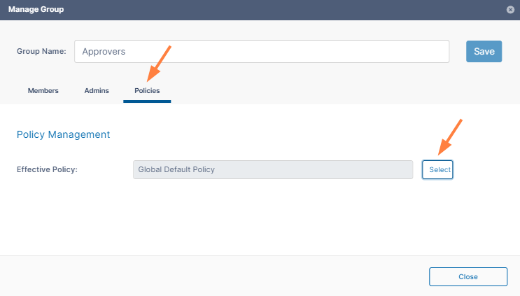 Group Policy - The policy that applies to all members of the group. By default, the Global Default Policy is assigned.