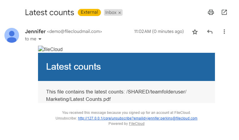 - We also check that our variable functions as expected by making sure the email includes name and path of the new file.