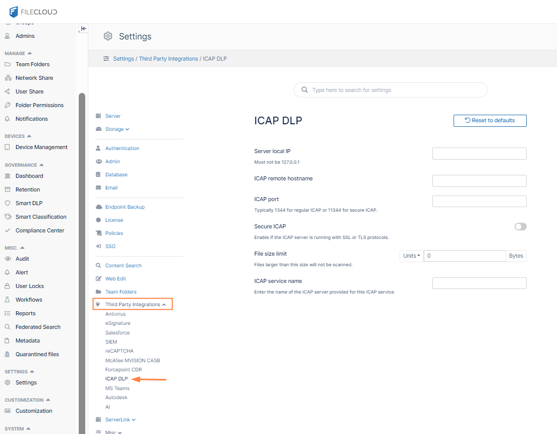 Integrating ICAP DLP with FileCloud