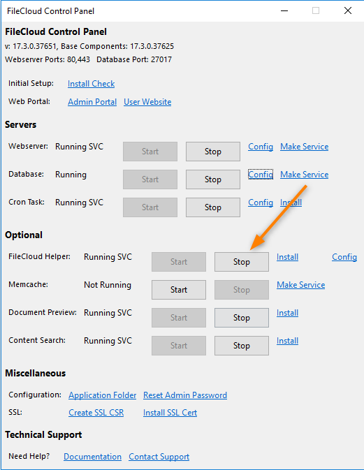 For FileCloud Server instances running on Windows, Helper service is a separate installation.