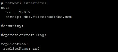 Before proceeding with this step, verify that all 3 DB servers can connect to port 27017 using the bind IP value.This applies to only one node. Select a node, db1.filecloudlabs.com, for example, and run the following command. If you run this in more than one DB server, the configuration will become invalid. It’s also important to use the bind_ip value used in