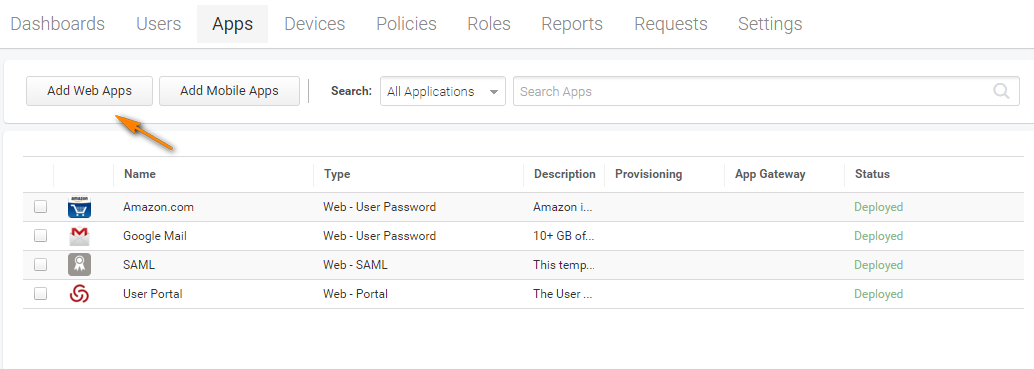 - From the Apps menu, click Add Web Apps.