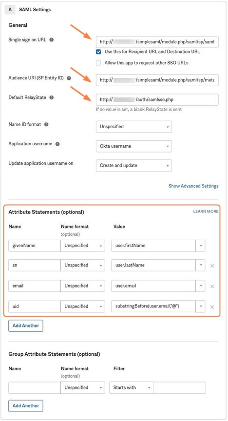 Set the Values for the Attribute Statements to the values shown in the screenshot.Okta FileCloud