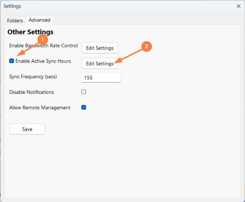 • If you are running the FileCloud Sync app on a busy network, you may want ServerSync to run at the least busiest times