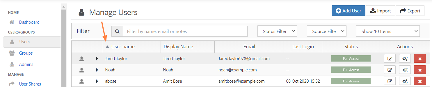 Enabling ASCII Sort order for Listings of Users, Files and Folders