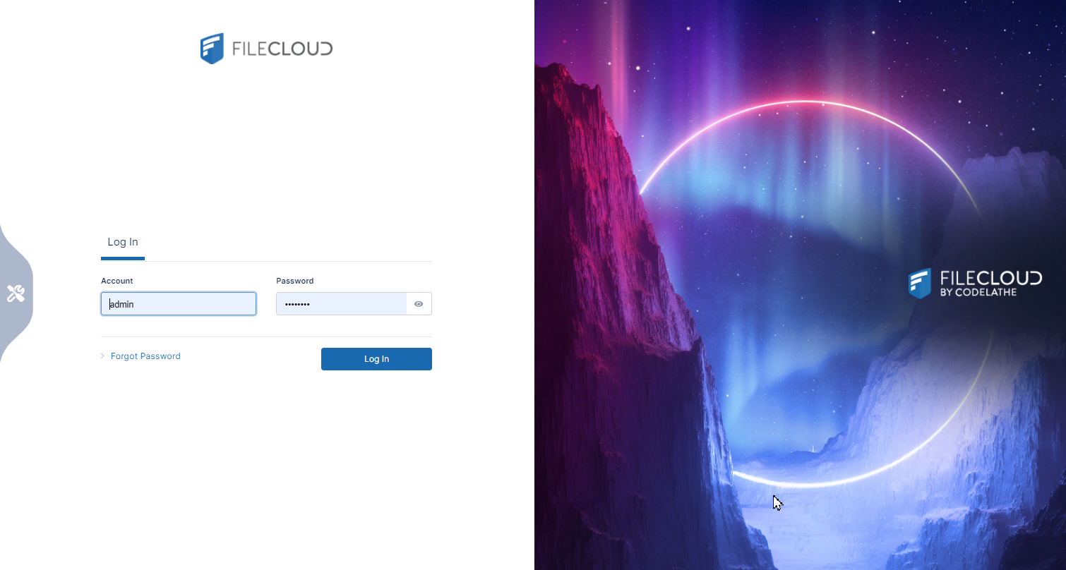 If your credentials were not changed during FileCloud installation, use the following information to log in to the admin UI.