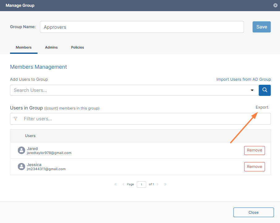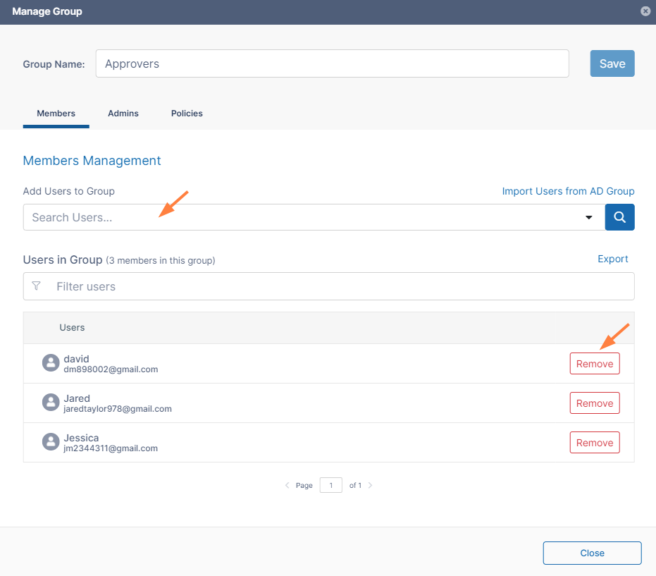 - To add a member, enter an existing FileCloud user's name or email address in the search bar, and click Add.