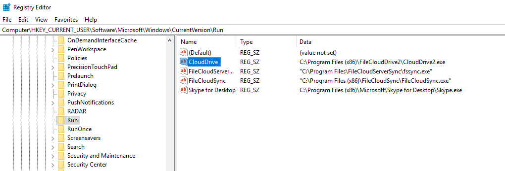 HKEY_CURRENT_USER\Software\Microsoft\Windows\CurrentVersion\Run