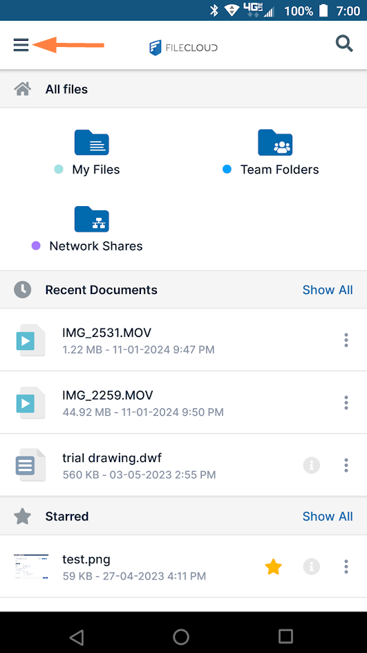 For more information about setting up offline folders and syncing files in Android, see Syncing FileCloud on Android.