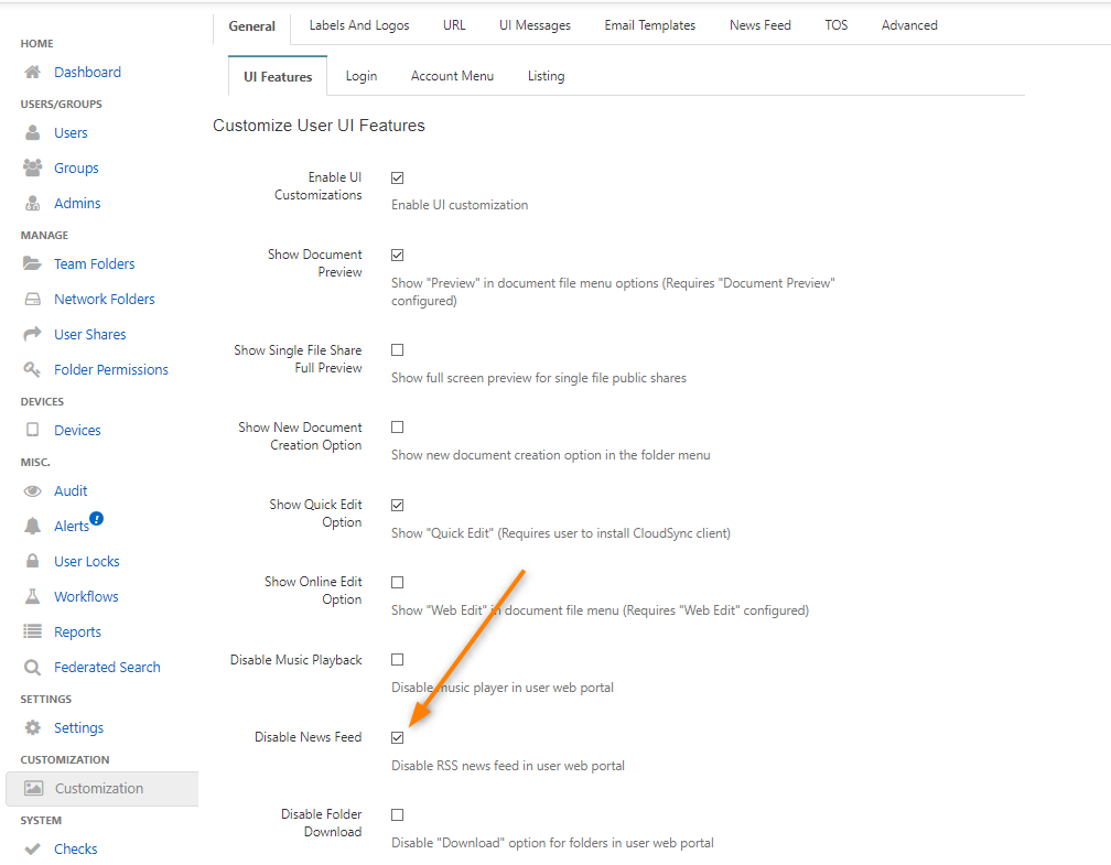 FileCloud supports displaying an RSS feed in the navigation pane of user web UI.