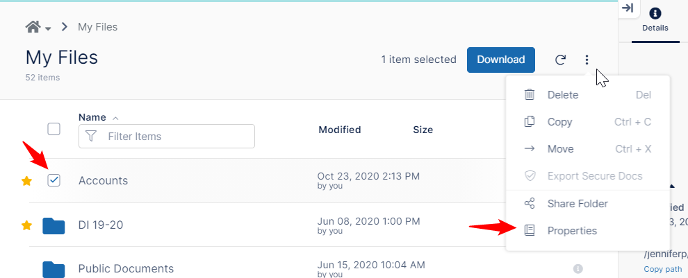 - In the upper-right corner of the screen, click the More (three dots) icon and choose Properties.