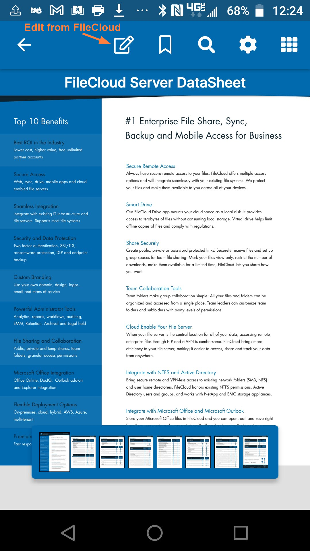 - Preview .pdf and .txt files and edit them in the FileCloud Android application. No third-party app is required.