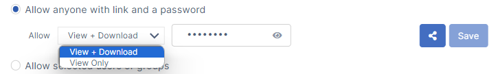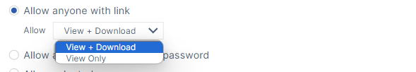Choose View + Download or View Only to specify users' permissions on the share.