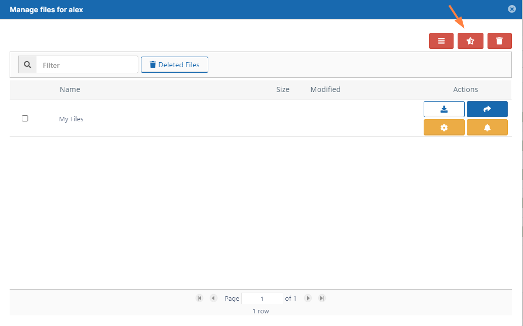 The Manage Files for <User> window opens. - Click the Remove All Incomplete Uploads icon