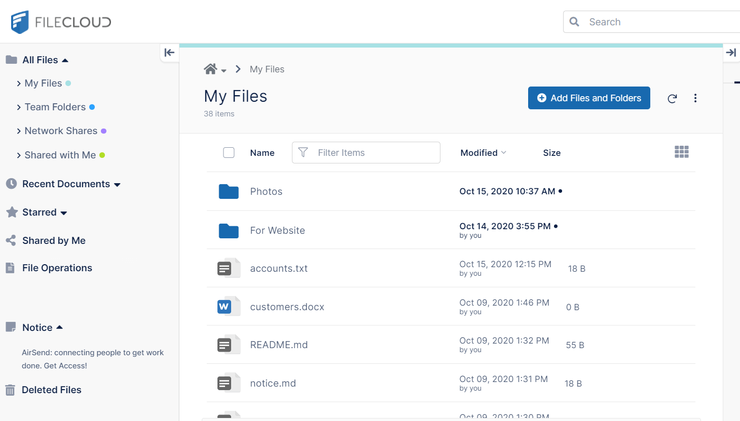 To rename a file or folder, hover over its row and click the More button, and select Rename. Enter the new name and click Enter.