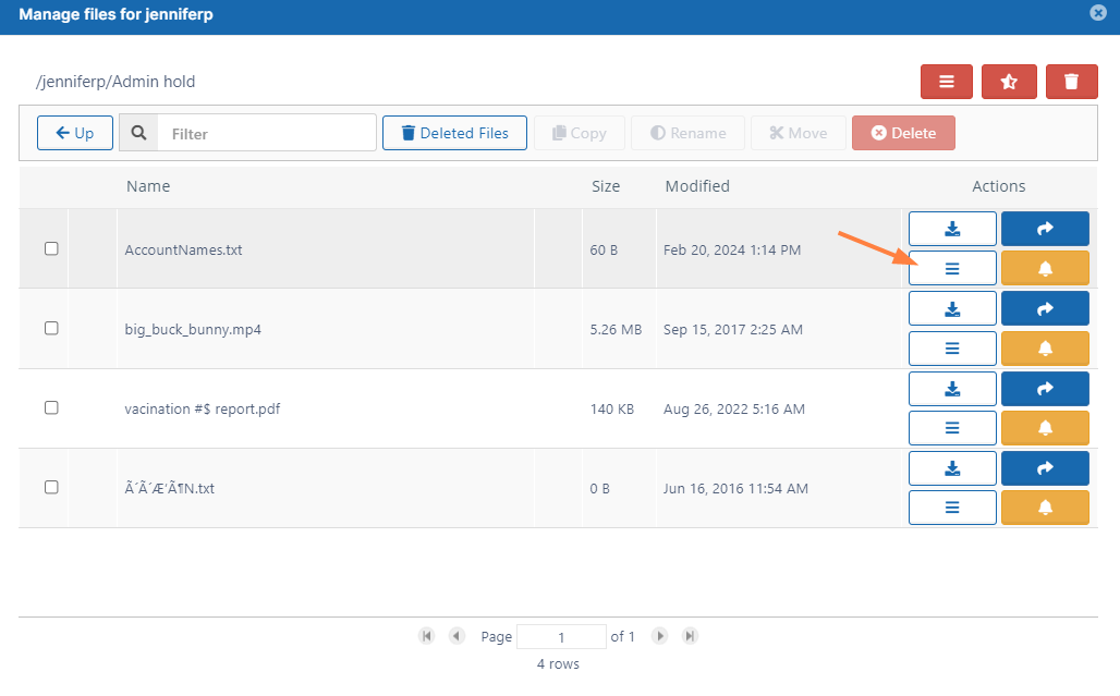 On the User Detail dialog box, click Manage Files. The Manage Files for <User> window opens.