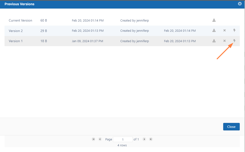 To see a list of earlier versions, click the Version icon.