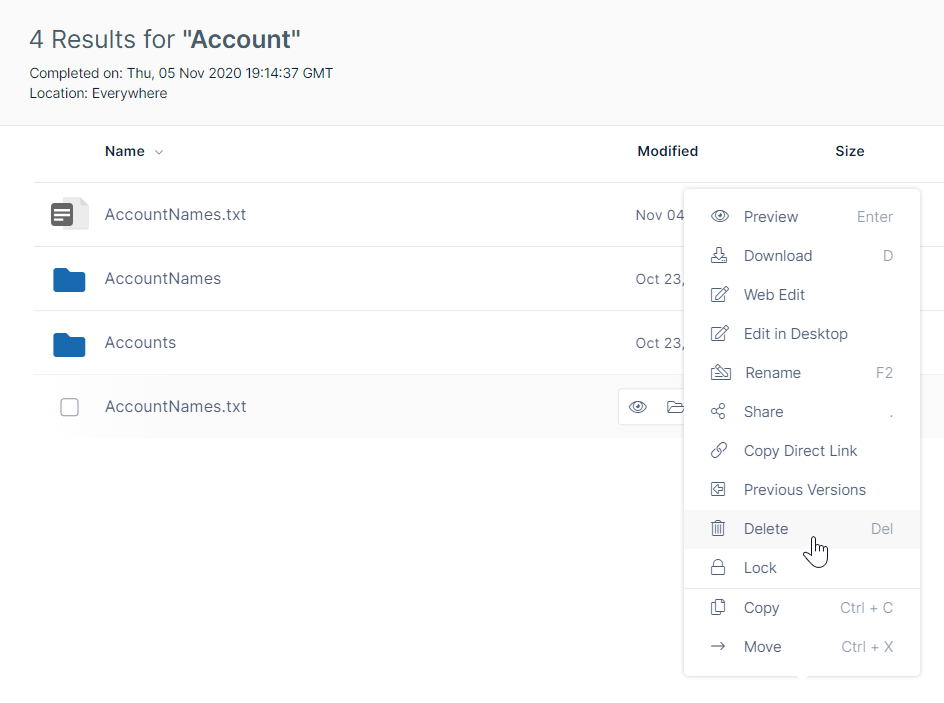 To increase search speed when users rerun a previous search, FileCloud saves search results.
