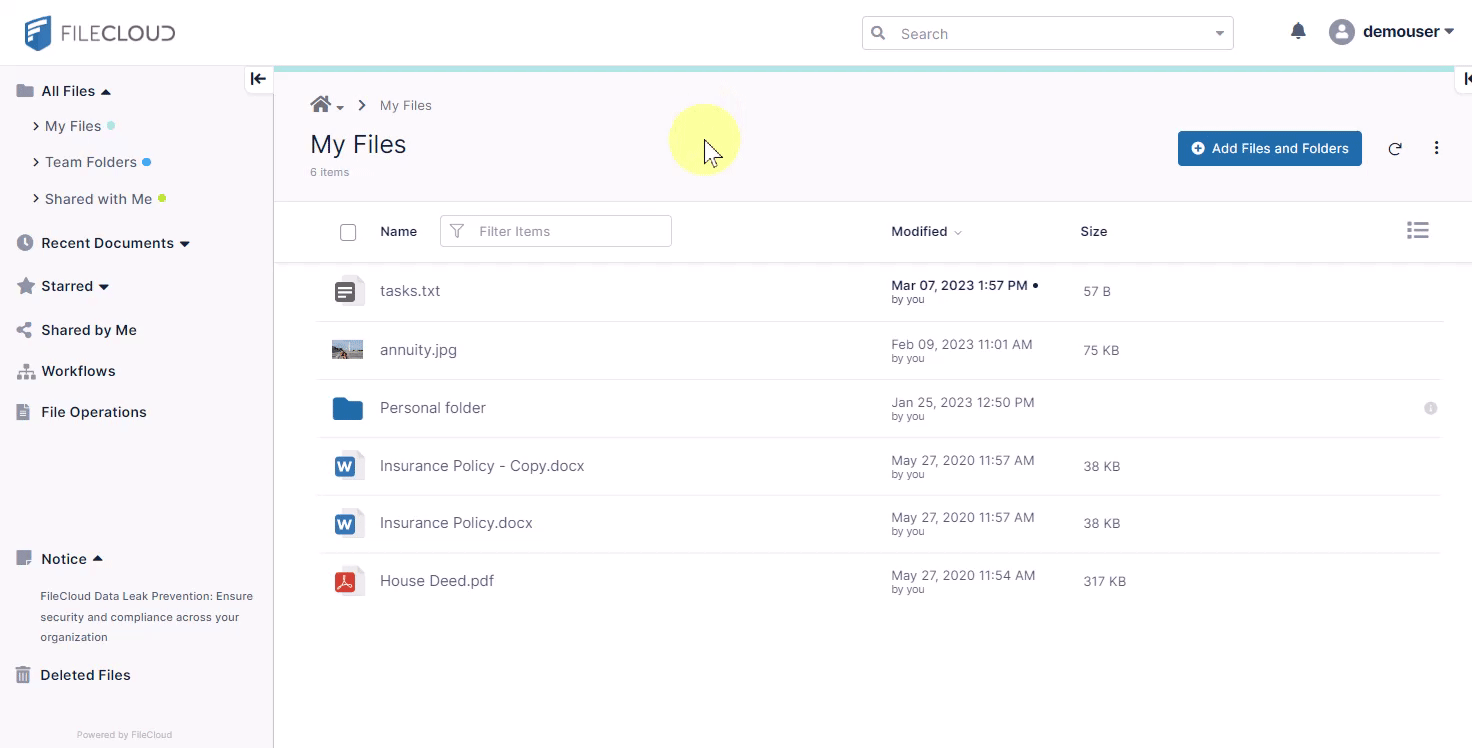 Select a file or folder by clicking the checkbox next to it or any where in the item row.