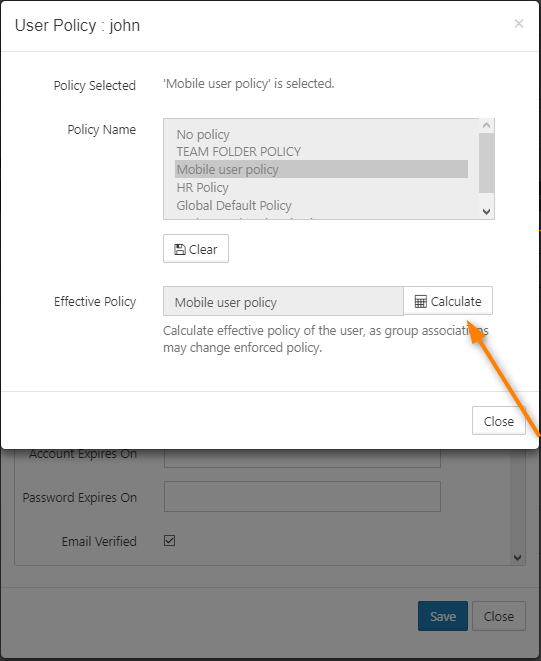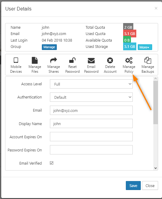 You may override a policy when you are editing the user details for a specific user; however, the new policy settings apply to all users who are assigned that policy.