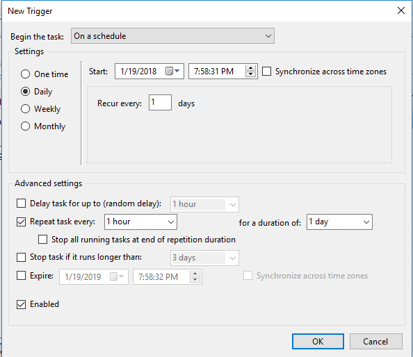 Set up a Scheduled Task in Windows (alternative to Cron Service)