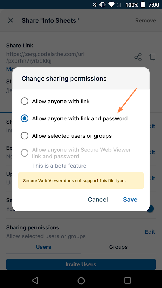 - Allow anyone with link (Public Share). No FileCloud account required.