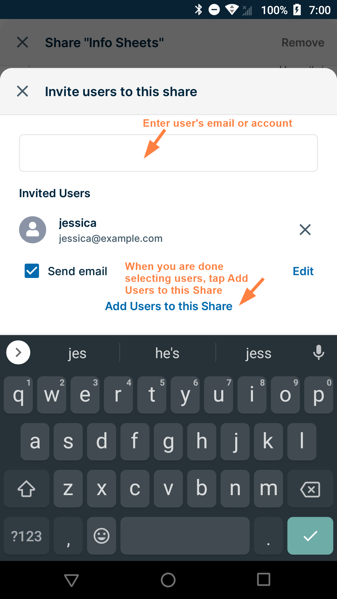 To share files on Android, see Share a File on Android.