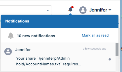 In addition, if you click the Notifications icon at the top of the screen, you will see any notifications about shares awaiting your review: