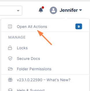 - Or you can click your username in the upper-right corner of the screen and choose Open all actions: