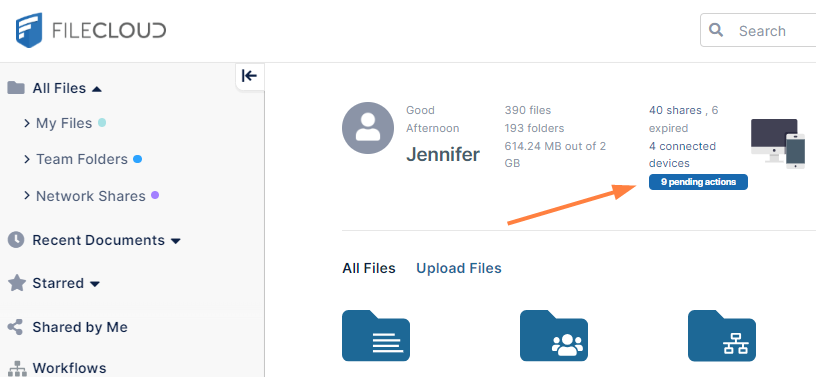 When you first log in to the user portal, if you see the pending actions button, there may be a share awaiting your approval.