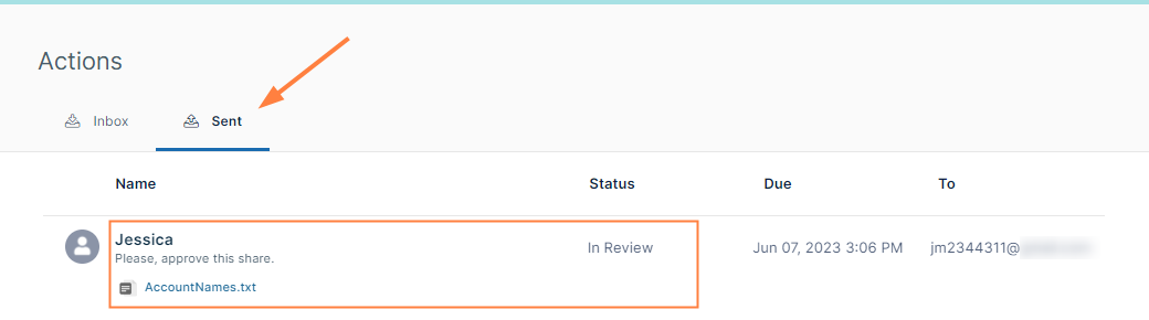Another way to check the status of an approval is to go to the Sent tab on the Actions screen.