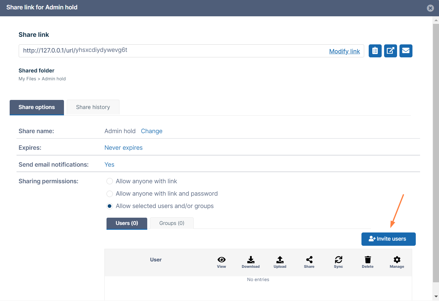 To create a share or manage it, select the Share Link option from the right-click menu.