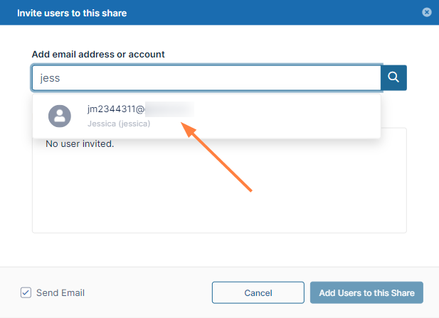 5. Click the user email/username to add the user to the Invited Users dialog box.