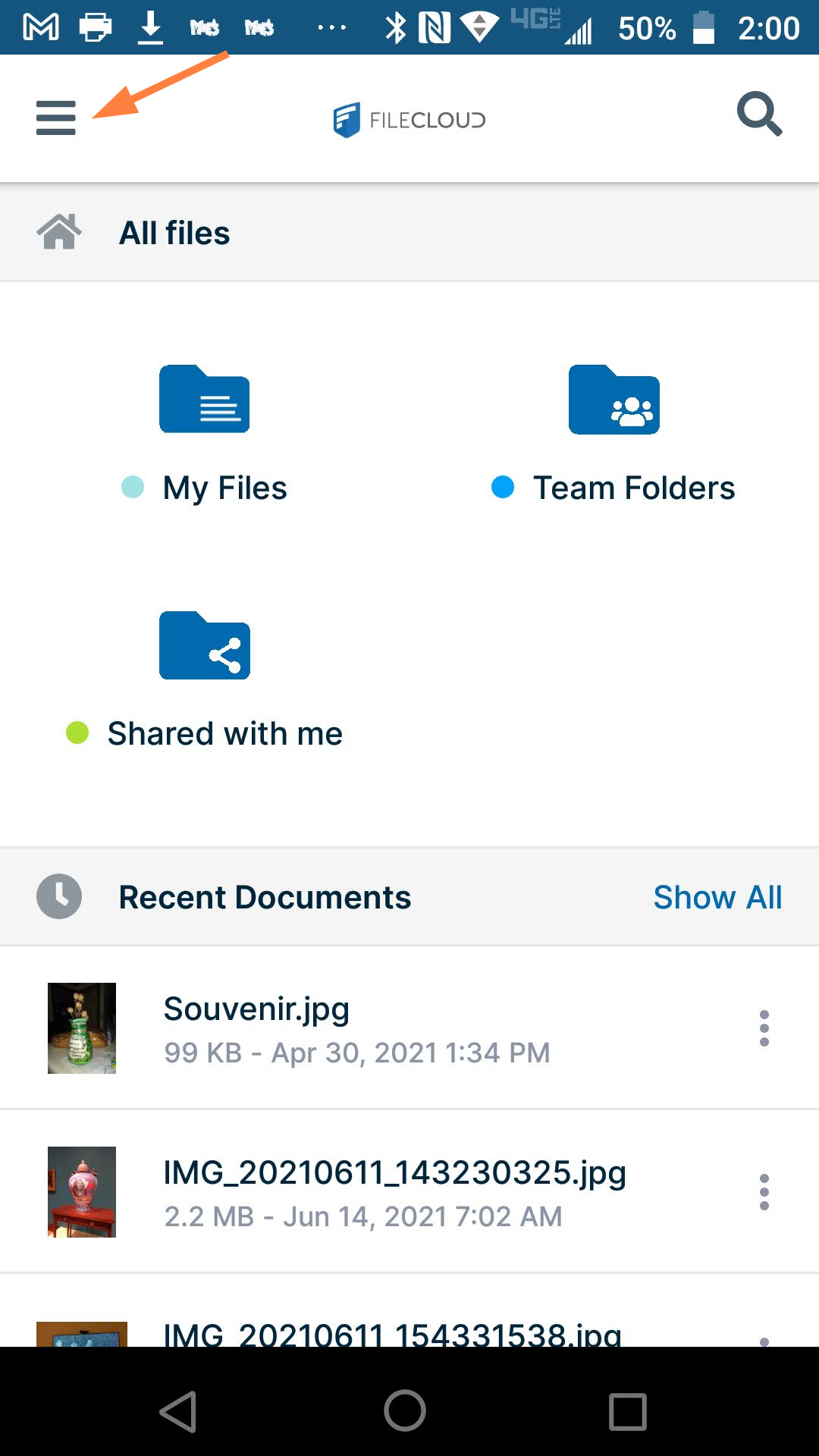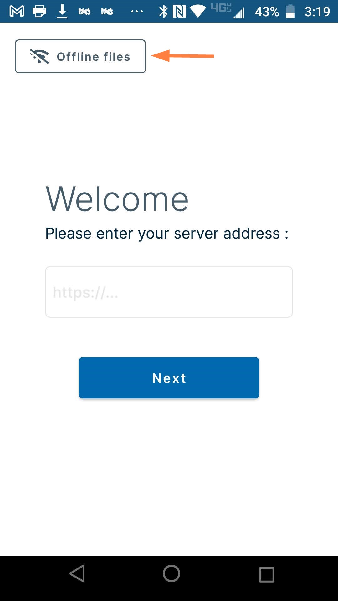 - Before you log in, if there are offline files synced, an Offline files button appears.