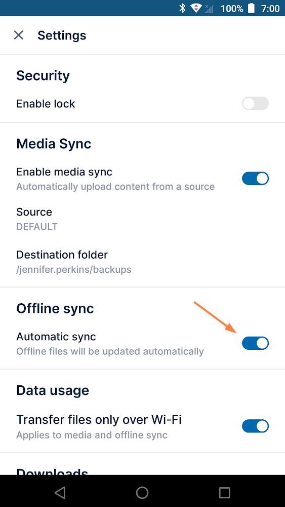 Two-way sync: Changes made to your local files will be uploaded to the server when syncing. Any files on the server that have updated since the last sync will replace your local files.