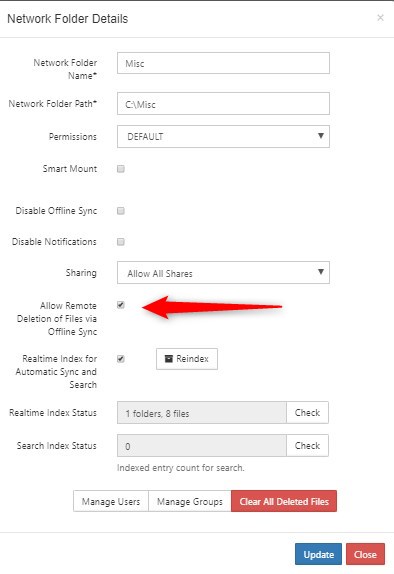 - Check Allow Remote Deletion of Files Via Offline Sync.