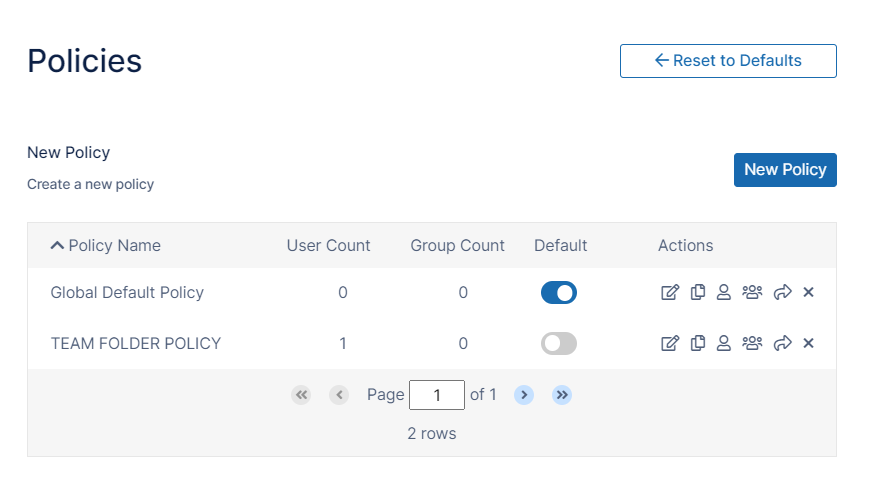 In the FileCloud admin portal's left navigation bar, scroll down and clickSettings.Then, on theSettingsnavigation page, clickPolicies . The Policies page opens.