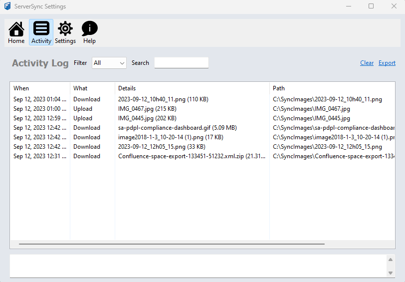 - This log shows you all of the actions that ServerSync is trying to complete, and if there were problems.