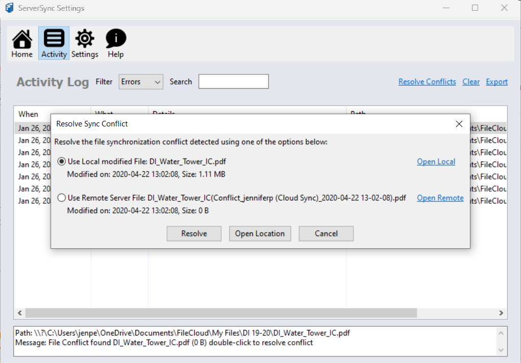 - By creating a conflicted file, ServerSync ensures that all changes are preserved and no one will overwrite another person's work.