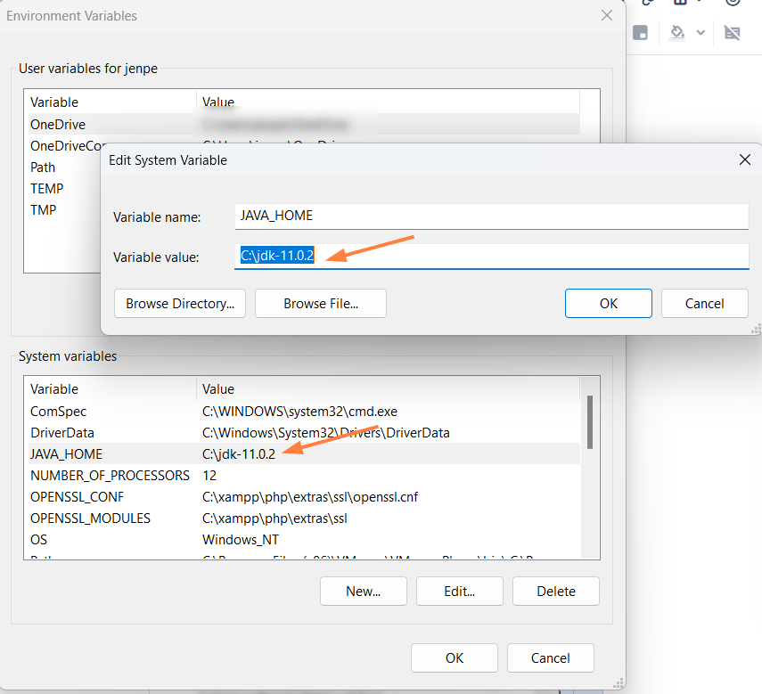 Change Variable value to the address of the folder you created for jdk, and click OK.