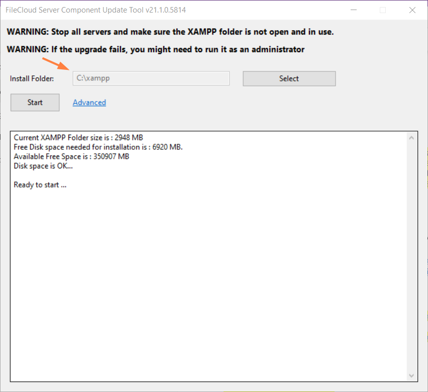 Ensure that Install Folder shows the location of your XAMPP folder. This location is auto-detected, but it may not be able to determine it correctly if there are multiple XAMPP folders. If it is not correct, select the correct XAMPP install folder.