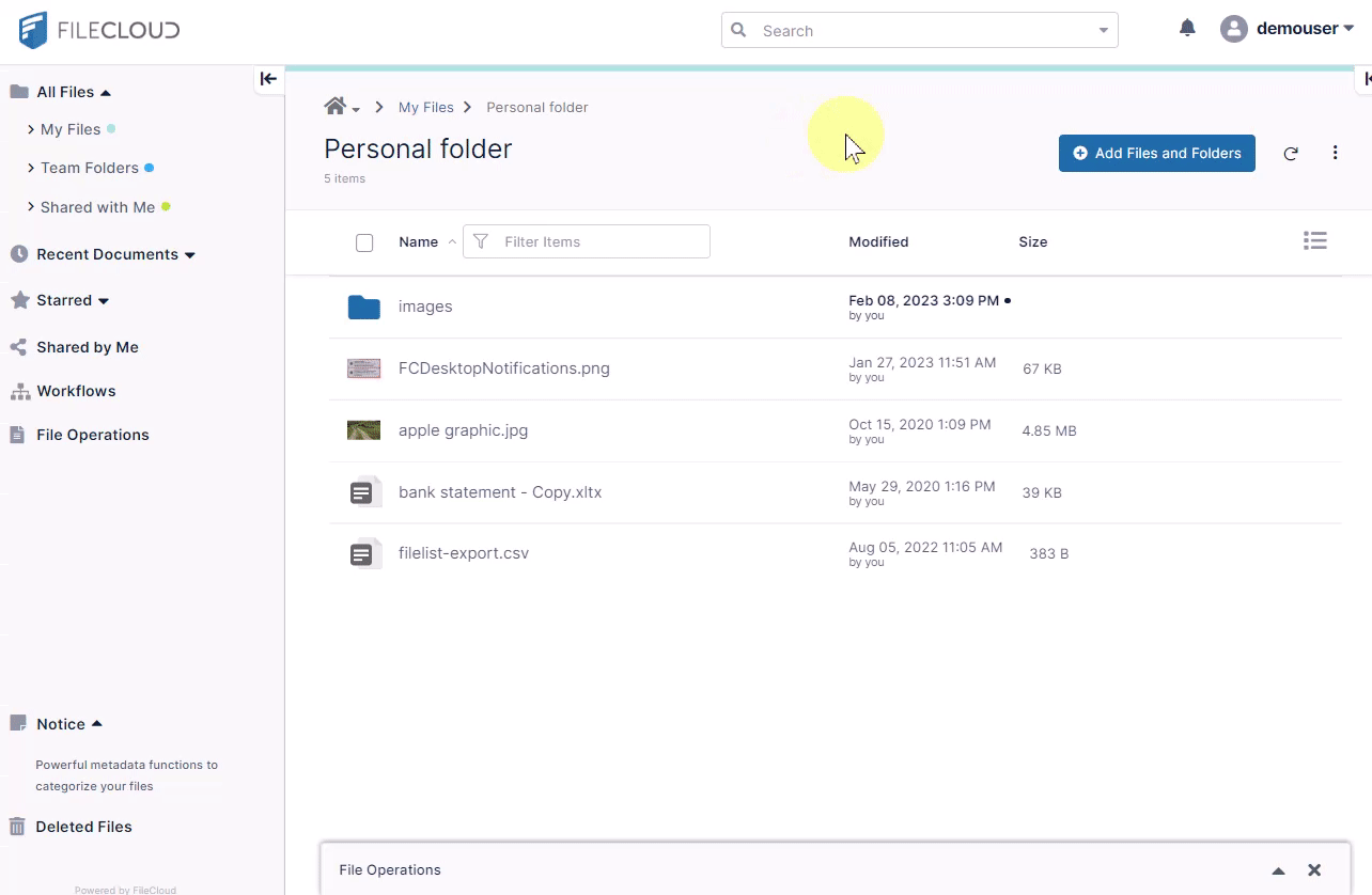 - By dragging and dropping the file or folder onto the FileCloud browser window.