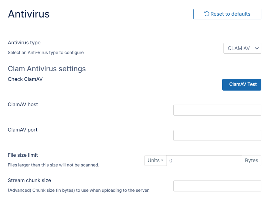 Once ClamAV is set up and started, add details of the ClamAV service to FileCloud.