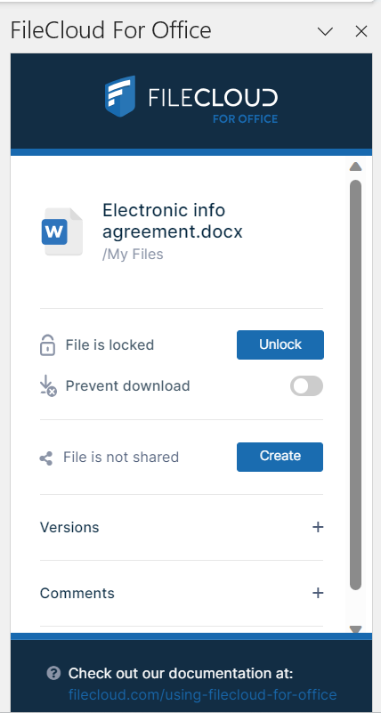 FileCloud for Office works with Office documents to enable you to: